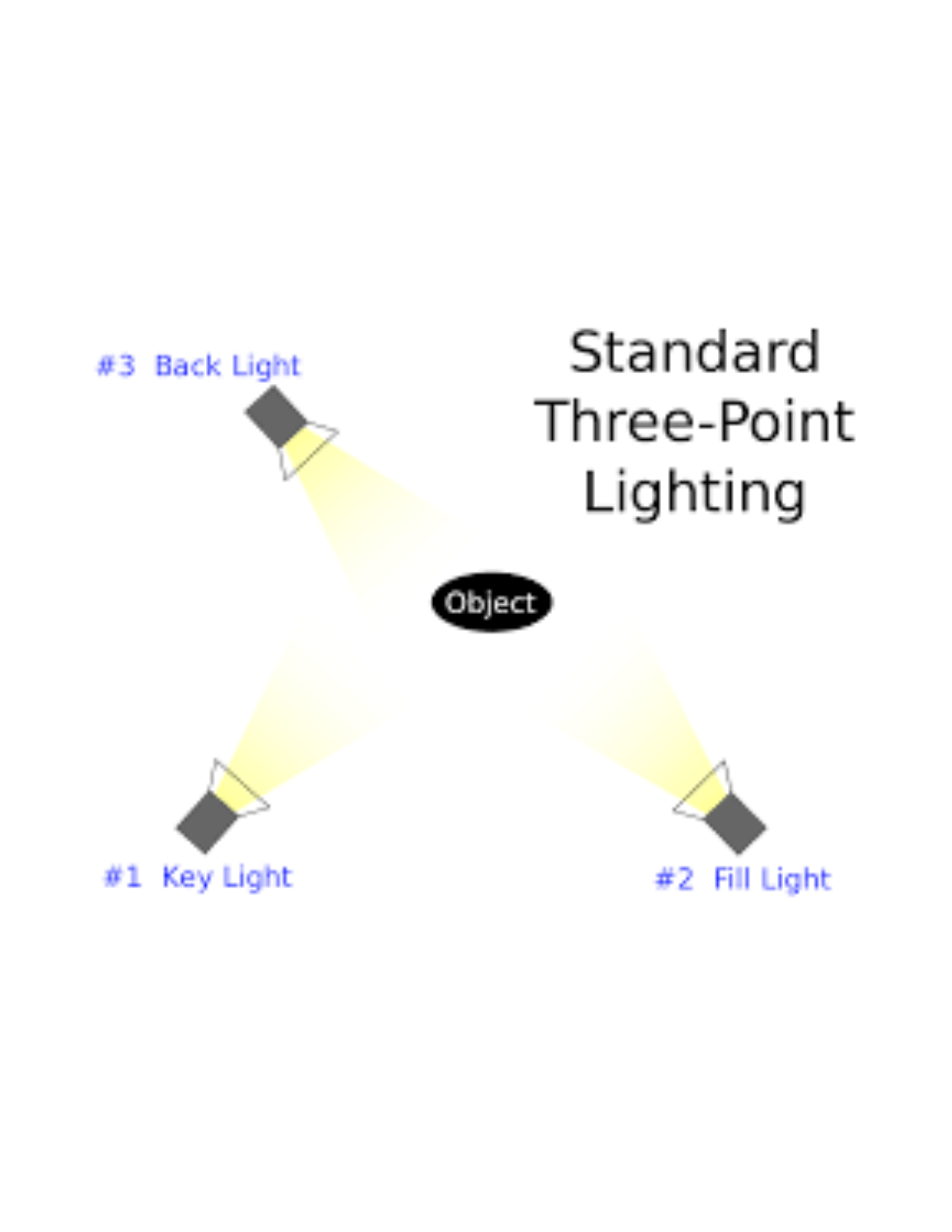 3-point lighting is a standard method used in visual media such as theatre, video, film, still photography, and computer-generated imagery.