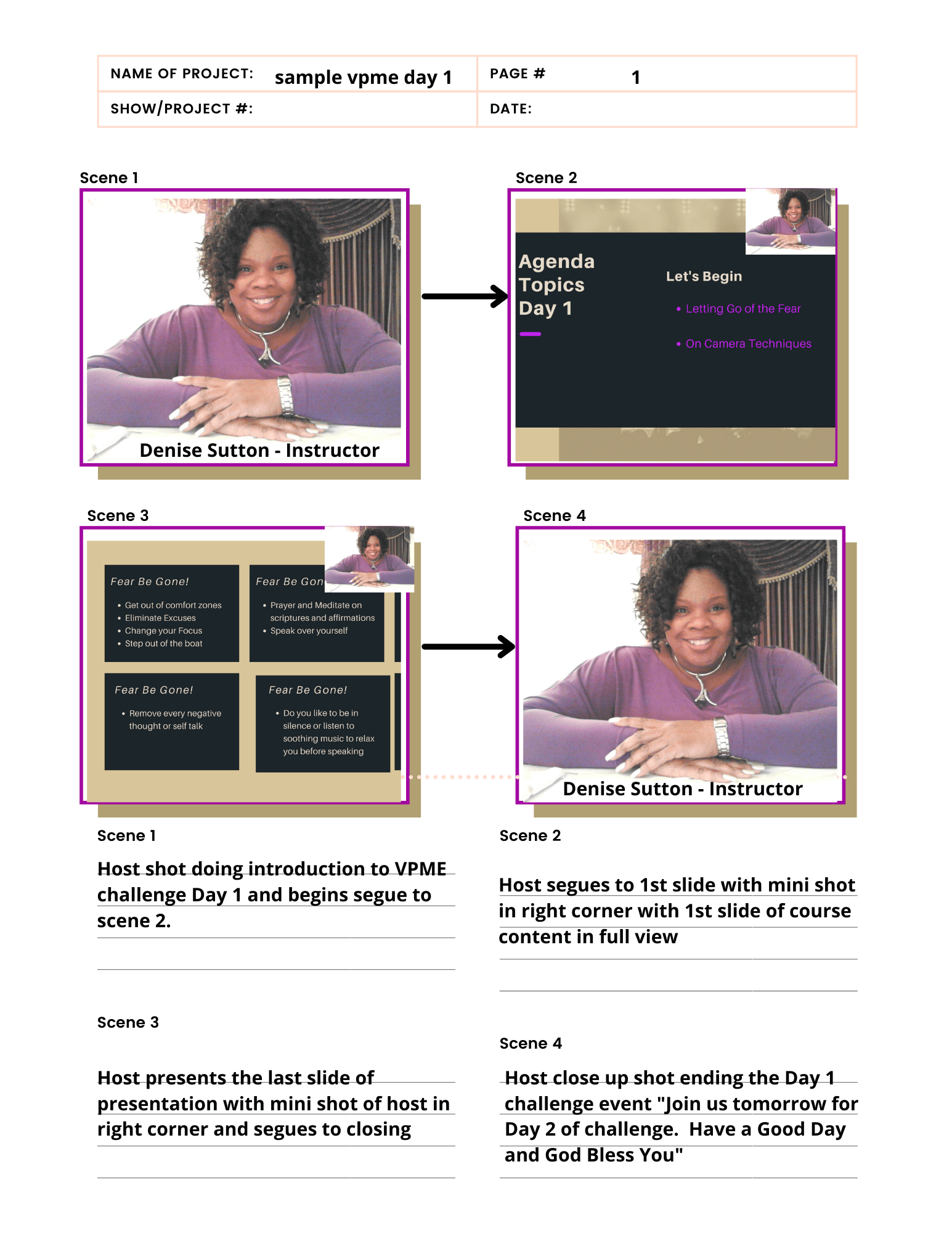 The ball is now in your court and it is now time for you to try and create a storyboard for your new project. Layout your story on paper or using the template and write out your scenes with directions, segues, and written out dialogue. I am looking forward to viewing your completed storyboards for your upcoming project. You can do it! Leave a sample in the comments section below and let me know if what I have shared has been helpful to you as you continue your journey in the broadcast production arena.